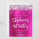 Um estilo moderno e glamouroso, estilo manuscrito ousado, aniversário de 21 anos convite para ela. Você pode personalizar este convite para outra celebração de aniversário de marco. O recurso de arte digital falha a brilha prateada cintilante com faíscas extras contra uma imagem gráfica de arte digital fotográfica rosa e quente. Todos os elementos brilhantes neste design feminino moderno são gráficos digitais que impressão gostam de uma foto.