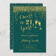 Convite para aniversário de 21 anos. Saúde Para 21 Anos! Design elegante em esmeralda verde e ouro. Apresenta óculos de champanhe, fonte de script e confetti. Perfeito para uma festa de aniversário na moda. Personalize com seus próprios detalhes. Pode ser personalizado para mostrar qualquer idade.