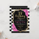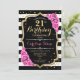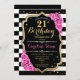 aniversário de 21 anos Convite para, design cor-de-rosa preto Elegante com brilho falso. Listras brancas e pretas com rosas cor-de-rosa. Perfeito para uma bolsa mensageifesta de aniversario elegante.