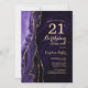 Convite de festas de aniversário de 21 anos de agato roxo e dourado. Elegante design moderno com aquarela agate marble geode background, faux glitter gold e typografia script font. Trendy convida o cartão perfeito para uma comemoração de dia das mulheres na moda. Impressos convites Zazzle ou modelo de impressão digital instantânea para download.