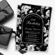 O padrão floral de rosa muito elegante preto e branco cria um modelo de convite para aniversário de 21 anos. O texto branco e a caligrafia são enquadrados por um arco preto borrado em branco. Disponível em estoque de cartão ou como download digital. Este item faz parte da Coleção Floral de Rosa Negra e Branca. Contém modelos para criar um conjunto único de convites, sinais de boas-vindas e decorações de festas.