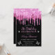 Glitter Rosa Quente Grelha em design de fundo preto com borboletas de diamante prateado