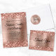 Um convite para comemoração aniversário de 21 anos glamouroso monograma para ela. Brilhante rosa dourado cintilante contra uma imagem gráfica de folha metálica fina e brilhante. O monograma e o texto da caligrafia branca e rico podem ser personalizados. Todos os brilhos brilhantes e cor-de-rosa neste moderno design feminino são gráficos digitais. 21 anos.