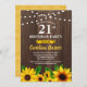 Convites Aniversário de 21 anos de girassol. Qualquer idade