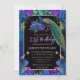 Convites Aniversário de 21 anos de Peacock Floral Azul e Pú