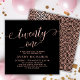 Elegante Chic Black e Rosa Dourado 21 Script aniversário de 21 anos. Este moderno modelo de convite de aniversário para mulheres apresenta o texto na moda "vinte e um" em um grande falso texto de folha de ouro rosa robusto, escrita à mão (ou tipografia), com letra maiúscula, detalhes da festa em cor azul rosa em fundo preto. No lado inverso, o padrão de círculo de onda oscilante da folha rosa de ouro falso em forma de película de ouro em preto. Perfeito para comemorar, aniversários femininos em estilo, este convite adiciona um toque de glamour a qualquer partido feminino.
