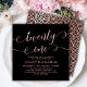 Chic Elegant Black e Rosa Dourado 21 Script aniversário de 21 anos. Este moderno modelo de convite de aniversário para mulheres apresenta texto na moda "vinte e um" em uma enorme folha de ouro rosa Chic swirly handwrite calliografia (ou tipografia) com fonte de cauda de swash, detalhes de festa em cor de rosa vermelho sobre fundo preto. No lado inverso, o padrão de círculo de onda oscilante da folha rosa de ouro falso em forma de película de ouro em preto. Perfeito para comemorar, aniversários femininos em estilo, este convite adiciona um toque de glamour a qualquer partido feminino.