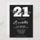 Convite para aniversário de 21 anos branco e preto moderno. Design de modelo de convite de aniversário de 21 anos minimalista com uma caligrafia elegante com letra de escrita manuscrita.