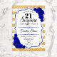 Convite para aniversário de 21 anos surpresa. Branco feminino, design azul real com ouro brilhante falso. Apresenta faixas, rosas azuis safiras, fonte de script e confetti. Perfeito para uma bolsa mensageifesta de aniversario elegante. Pode ser personalizado para mostrar qualquer idade. Envie-me uma mensagem se precisar de mais personalização.