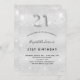 Um convite moderno, na moda e glamouroso para um aniversário de 21 anos. Um fundo com aparência de prata falsa, decorado com poeira brilhante. Personalize e adicione o seu nome e detalhes da festa. O número 21 é escrito com uma fonte de estilo balão, script.