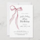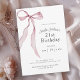 Comemore um aniversário de 21 anos no estilo de coquete feminino com este simples convite de festas encantador com um arco cor-de-rosa com longas fitas à volta. A simplicidade desta design misturada com o arco rosa feminino faz dela uma escolha encantadora para uma celebração de aniversário de 21 anos. Personalize o modelo de texto com os detalhes do evento. Este convite está disponível em formatos digitais de download impressos e instantâneos para sua conveniência.