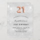 Um convite moderno, na moda e glamouroso para um aniversário de 21 anos. Um fundo com aparência de prata falsa, decorado com poeira brilhante. Personalize e adicione o seu nome e detalhes da festa. O número 21 é escrito com uma fonte falsa no estilo do balão dourado, script.