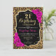 Convite para aniversário de 21 anos. Design preto rosa elegante com ouro brilhante. Apresenta impressão de animais leopardo cheetah, fonte de script e rosas rosa-quente. Perfeito para uma bolsa mensageifesta de aniversario elegante. Pode ser personalizado em qualquer ano! Envie-me uma mensagem se precisar de mais personalização.