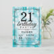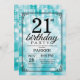 aniversário de 21 anos com luzes de cordas de chá com fundo de brilho de cor. Aniversário Teal. Aniversário Adulto. Homens ou Mulheres no Dia Convidam. 13 15 16º 18º 20 21 rua 30 40º 50º 80 de 60º 70 de 100º, qualquer idade.