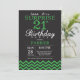 Surpresa aniversário de 21 anos com Chevron Negro e Verde. Chalkboard. Aniversário Adulto. Convidam o Homem ou a Mulher Bday. Para mais personalização, clique no botão "Personalizar" e use nossa ferramenta de design para modificar este modelo.
