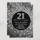 Convite para aniversário de 21 anos surpresa. Glitter preto e prateado. Diamante de prata. Festa de aniversário adulta. Para Homens ou Mulheres. Para mais personalização, clique no botão "Personalizar" e use nossa ferramenta de design para modificar este modelo.