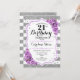 Convites aniversário de 21 anos - Rosas roxas de prata bran