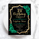 Convite de festas aniversário de 21 anos. Elegante design verde esmeralda floral com ouro brilhante falso, rosas e fontes de script. Perfeito para uma comemoração de dia das mulheres na moda. Pode ser personalizado para qualquer idade! Impressos convites Zazzle ou modelo de impressão digital instantânea para download.