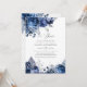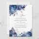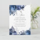 Convites de aniversário de 25 anos de casamento prateado florais navy e branco com sotaques de folha de prata.
