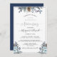 Convite de aniversário de casamento de 25 anos (ou outro) requintado com detalhes prateados e detalhes florais em azul-marinho, azul-claro e cinza pintados à mão em aquarela. Possibilidade de alterar o número do aniversário para atender às suas necessidades. Uso de tipografia moderna e elegante em Script e bloco. Verso em tom azul-marinho elegante e detalhe floral central cativante. Produtos coordenados disponíveis. Parte da nossa coleção de casamento e eventos "Montanhas Azuis Rústicas".