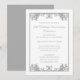 Um convite de celebração de aniversário de 25 anos de casamento com um design de rolo florido de prata vintage. Personalize com os detalhes da sua festa.