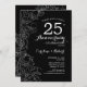Convite de Aniversário de Casamento de 25 anos Floral Preto e Branco. Design moderno minimalista com desenhos de contorno botânico e fonte de texto script. Cartão de convite elegante perfeito para uma celebração elegante. Pode ser personalizado para qualquer ano de casamento. Convites impressos da Zazzle ou modelo digital para impressão instantânea.