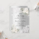 Para um elegante e romântico aniversário de 25. Um fundo com aspecto fino prateado decorado com flores, rosas e rendas brancas. Personalize e adicione seus nomes e detalhes.