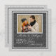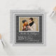 Cor damasco prateada e você faz o upload de uma foto do casal de aniversário de 25 ou uma foto do dia de casamento deles com o nome na frente e personaliza as costas com as informações da sua festa.