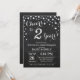 Convite de Aniversário de 2 anos de Casamento Quadro-negro Preto e Prata. Fundo de Diamante Brilhante Preto e Prata. Confetes Prateados. Aniversário Adulto. Festa de Aniversário Feminina ou Masculina. Para personalização adicional, clique no botão "Personalize" e use nossa ferramenta de design para modificar este modelo.