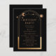 aniversário de 30 anos 330 Celestial Mystical Black Dourado Sun Moon Astronomy Birthday Invtions apresenta sol dourado, lua e estrelas com um quadro de ouro sobre fundo negro. Dentro é a sua informação de convite de aniversário personalizada. Projetado para você pelo Evco Studio. Ver a coleção de coordenação em www.zazzle.com/store/evcostudio