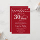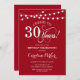 aniversário de 30 anos Convite Simples de design vermelho e branco com luzes de cordas de fada e fontes de script. Até 30 anos! Pode ser personalizado em qualquer idade! Envie-me uma mensagem se precisar de mais personalização.