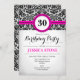 Convites aniversário de 30 anos - Damasco preto-rosa-quente