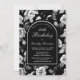 O padrão floral de rosa muito elegante preto e branco cria um modelo de convite para aniversário de 30 anos. O texto branco e a caligrafia são enquadrados por um arco preto borrado em branco. Disponível em estoque de cartão ou como download digital. Este item faz parte da Coleção Floral de Rosa Negra e Branca. Contém modelos para criar um conjunto único de convites, sinais de boas-vindas e decorações de festas.