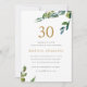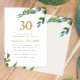 Folhas botânicas simples e bonitas de cor aquática em azul e verde-sábio, 30 anos de convite de festas de celebração, apresentam uma linda cinza de pomba com verde e uma frente branca com texto preto e dourado. Um jeito adorável de celebrar o aniversário de 30 anos de uma pessoa especial.