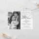 Convite de Aniversário de 30 anos de Casamento com Foto. Design elegante em prata e branco com fonte script e confetes de diamantes. Pode ser personalizado para mostrar qualquer ano de casamento. Saúde por 30 anos!