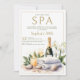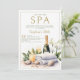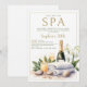 aniversário de 30 anos ideias: Pamper a si mesmo e aos seus melhores amigos e família com um dia no spa para a sua festa de aniversário de 30 anos. Este elegante, moderno e clássico convite que inclui uma pintura aquosa de uma garrafa de champanhe, verde, seixos, toalhas e uma orquídea florescente atrairá os mais próximos e queridos a juntarem-se a vós quando celebrarem um aniversário de marco. Perfeito para uma mulher moderna aos trinta anos.