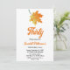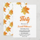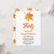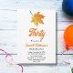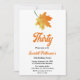 Este elegante convite de aniversário de outono é perfeito para um aniversário de outono moderno. A simples design apresenta folhas verdes de outono com elegante tipografia preta e laranja sobre fundo branco.