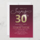 Modern Shhh, é uma convite de festas surpresa que apresenta o roteiro de na moda e o falso número 30 de brilho dourado e os detalhes do seu partido sobre cor vermelha de fundo burgundy, simples e elegante, convite de aniversário para homens e mulheres, para adultos que foram surpreendidos com excelentes.