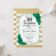 Convite de festas de aniversário de 30 anos surpresa. Design verde feminino com ouro brilhante falso. Apresenta faixas brancas e douradas, rosas, fontes de script e confetti. Perfeito para uma elegante comemoração de aniversário feminina. Pode ser personalizado para mostrar qualquer idade. Impressos convites Zazzle ou modelo de impressão digital instantânea para download.