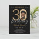 Foto Elegante, Dourada, Convite para aniversário de 30 anos de Surpresa Negra. Elevem a sua celebração de marco com um design de convite que epitomiza a elegância subestimada e o minimalismo quic. Nosso tema preto e ouro expele sofisticação, criando uma atmosfera refinada para seu dia especial. O recurso de foto personalizado adiciona um toque personalizado, garantindo que cada convite seja uma recordação única e apreciada. A simplicidade do design melhora seu apelo geral, fazer uma afirmação ousada através de linhas limpas e uma mistura saborosa de sotaques de preto e ouro. Junte-se a nós para uma celebração onde cada detalhe é cuidadosamente curado para refletir a beleza encontrada na simplicidade, criando memórias que são tão eternos quanto a própria ocasião.