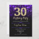 convite de festas aniversário de 30 anos. Design púrpura elegante com ouro brilhante. Apresenta na moda diamante, luzes e fontes de script. Convidado para mulheres ou homens no dia. Perfeito para uma festa de aniversário adulta na moda. Personalize com seus próprios detalhes. Envie-me uma mensagem se precisar de mais personalização. Impressos convites Zazzle ou modelo de impressão digital instantânea para download.