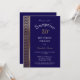 Convite de festas marinho janta azul e aniversário de 30 anos-surpresa estriado com divisa dourado moderno.