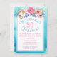 Celebrar 30 no estilo feminino do Alto Chá. Flores de aquarela lindas em fundo azul de aquarela. Se necessário, esse convite pode ser personalizado para mais 30 por ano. Lindos acessórios florais de trinta anos.
