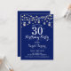 Convite de festas aniversário de 30 anos. Design de estilo russo em azul marinho. Apresenta fontes brancas de script, frascos de pedras e luzes de fadas. Pode ser personalizado em qualquer idade! Envie-me uma mensagem se precisar de mais personalização.