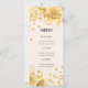 Elegante Glam Dourado Floral Glitter aniversário de 30 anos modelo Script com texto de menu de festa, arranjos de flores, confete de brilho e script de tipografia moderno.