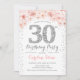 design Elegante do Convite de festas aniversário de 30 anos em prata brilhante falso, rosa e branco. Na moda floral com diamantes e rosas. Perfeito para uma comemoração de vidro. Envie-me uma mensagem se precisar de mais personalização.