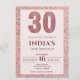 Convite para aniversário de 30 anos de rosa ouro