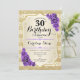 Convite para aniversário de 30 anos. Design elegante em ouro e roxo. Apresenta faixas de ouro com brilho sutil, fontes de script na moda de rosa de de roxo e confetti. Perfeito para uma festa de aniversário de vidro.