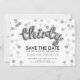 Design de Elegante "aniversário de 30 anos Party Save The Date" com as Letras de Balão e o confete Glitter do Silver e o nome personalizado e o texto de detalhes. Imprima sua família e amigos com este na moda e design glamouroso. Fácil de usar e fácil de personalizar. Faça o pedido hoje!