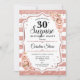 Convite para aniversário de 30 anos surpresa. Design branco feminino, cor-de-rosa, com ouro rosa brilhante falso. Apresenta faixas, rosas de pincelada, fonte de script e confetti. Perfeito para uma bolsa mensageifesta de aniversario elegante. Pode ser personalizado para mostrar qualquer idade. Envie-me uma mensagem se precisar de mais personalização.